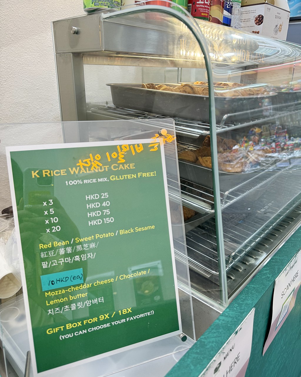 店內招牌小食,我起初以為佢個造型係核桃形所以叫核桃蛋糕,去到先發現原來每個都有一粒核桃在蛋糕底,又幾特別啊!三個甜口味分別是紅豆、蕃薯和黑芝麻,三款食落都唔太甜,所以唔會好膩。蛋糕脆香脆,中間又有核桃咬下,多重口感幾有趣。韓國的黑芝麻同港式黑芝麻唔太相似,建議唔好同黑芝麻糊果仲口味比較。