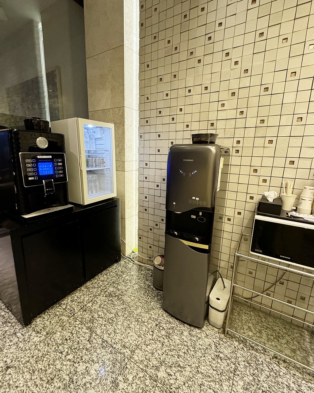 大堂環境比我想像中好,網上看到的圖片感覺一般,現場所見又幾光猛闊落,有沙發位可以坐,最正係有雪櫃、咖啡機和微波爐。咖啡就通常出街買都唔會在酒店飲,不過我每日出門口都會在雪櫃拎枝水,夜晚就拎兩枝上房,全程無在便利店買水,作為一個勁飲水的人省不少錢。