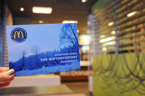 導遊說以往有個寫著最北麥當奴的牌子可以拍照留念,現在都拆了。不過你可以問待應拿張紀念明信片。